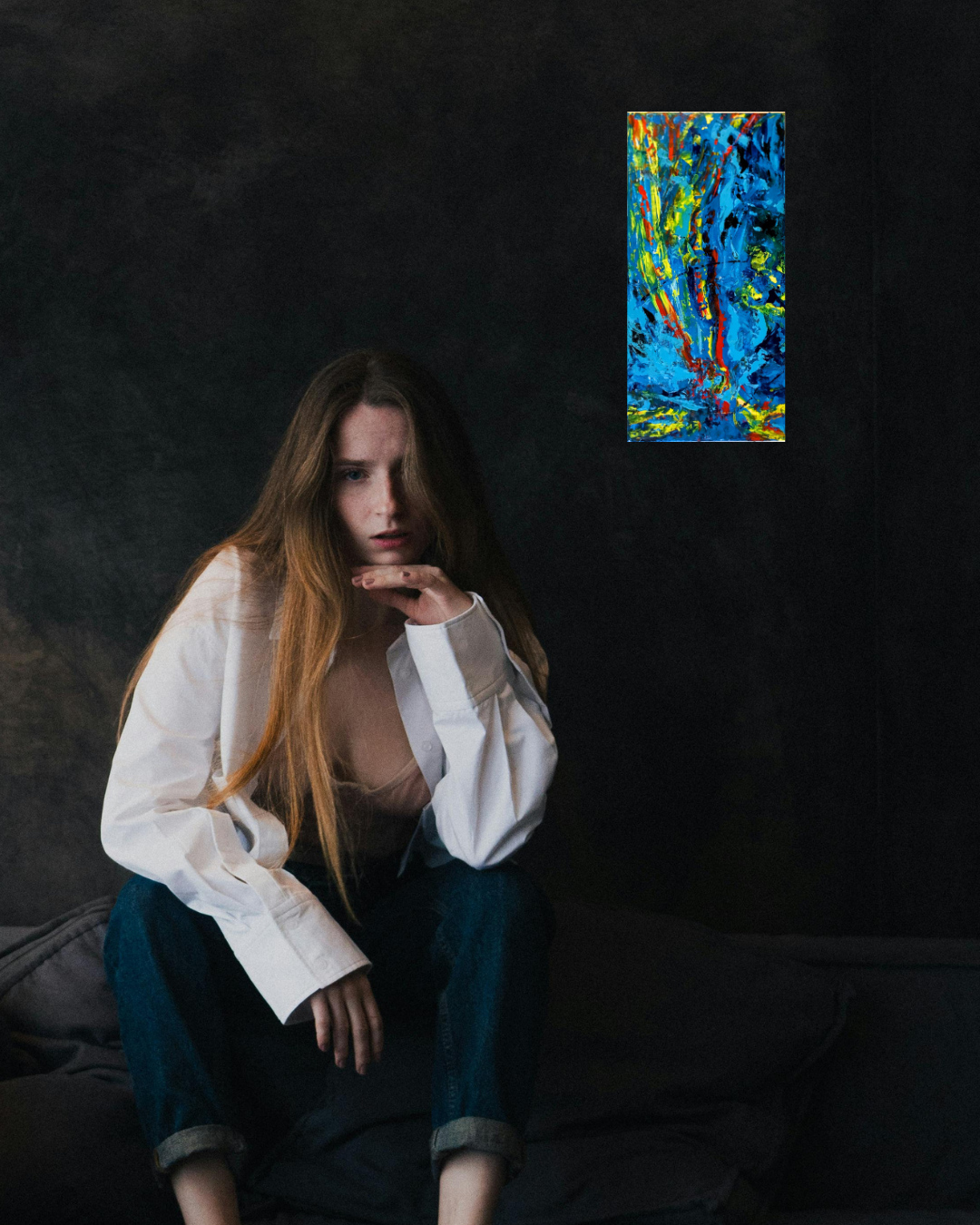 情熱的な青をテーマに描かれたクールな抽象画【The Impact of Blue】