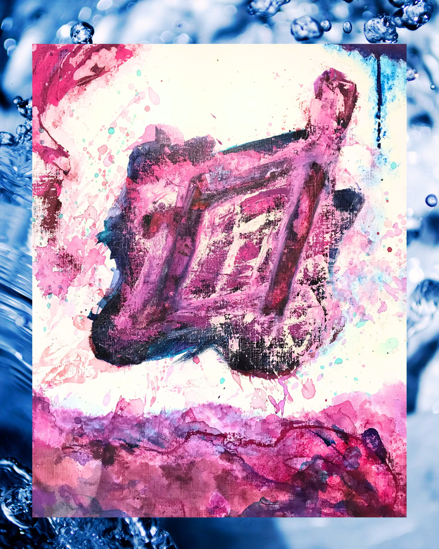 エネルギッシュな **ピンク 紫 ** そして青が調和した抽象画の原画作品**です。