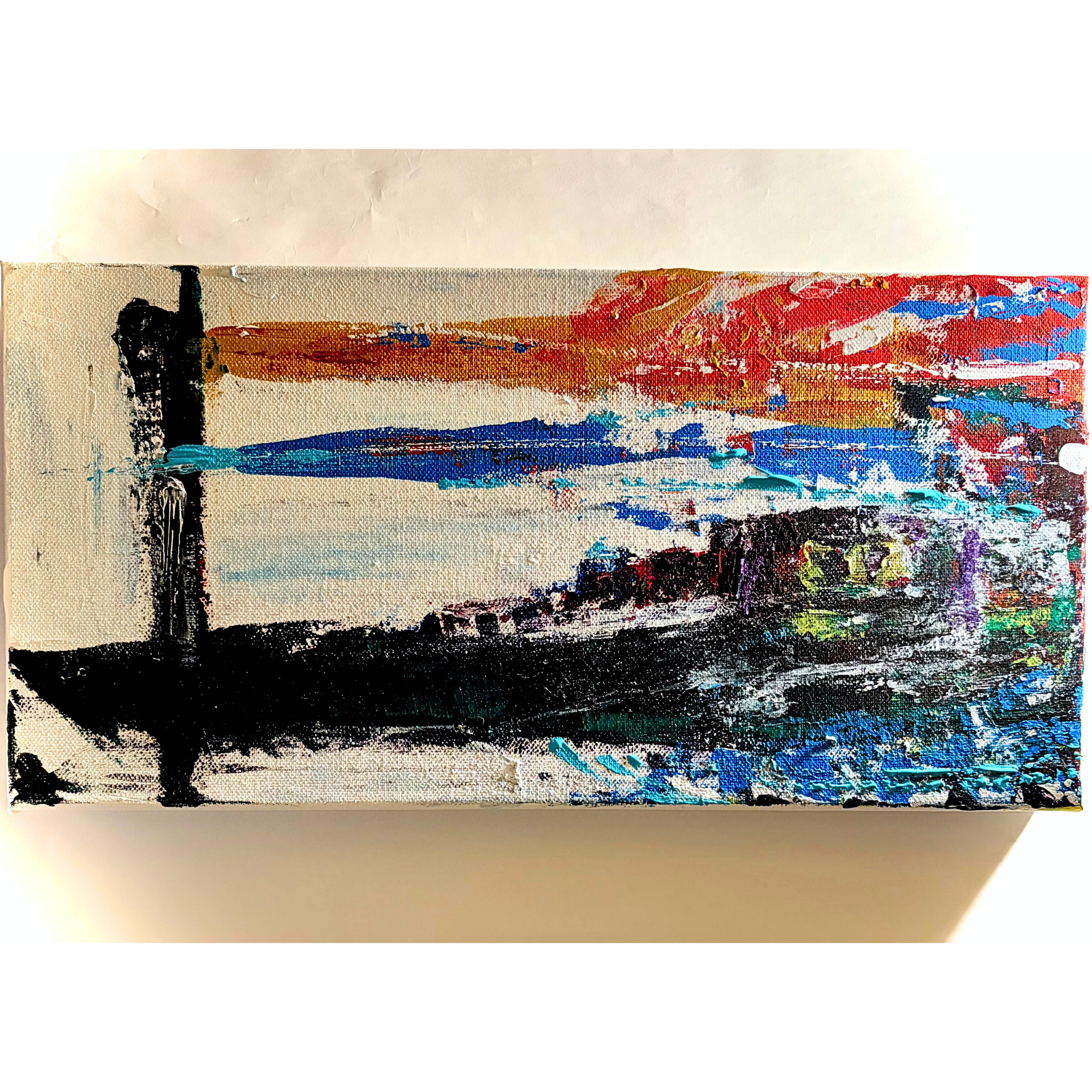 「Lines」は、赤・青・黒の線で構成された現代抽象アート作品です。